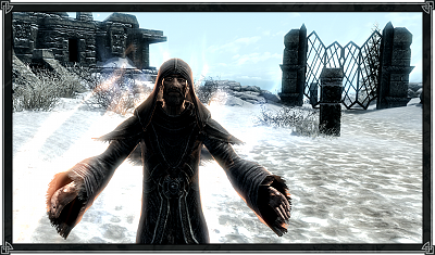 Vor den Toren legen wir zunächst Klimmeks Vorräte in die bereitgestellte Truhe auf den Stufen, bevor wir anschließend die Eingangshalle der heiligen Stätte betreten. Wir werden von einem Graubart namens Arngeir empfangen, welcher uns sogleich zur Begrüßung auf die Probe stellt. Wir sollen den Schrei der Macht, welchen wir im Ödsturzhügelgrab lernten, nun auf den Graubart anwenden. Dazu wählen wir den Schrei "Macht-Unerbittlliche Macht" in unserem Magiemenü aus, und schleudern ihn mittels belegter Schrei-Taste auf Arngeir. So beweisen wir den Graubärten unsere angeborenen Fähigkeiten in der uralten Kunst der Schreie, welche ein wahres Drachenblut auszeichnen. Haben wir diese Prüfung absolviert, so wird uns Arngeir in die Geschichte der Schreie einweihen.